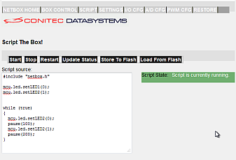 No additional software is required to set up a NETPORT module connected through a local network - any browser will do. A NETPORT module contains a HTTP server. When the module is connected to the LAN or to a USB-Port, it can be configured through a web interface, just like a router. On the web interface, all I/O ports can be controlled or simple control scripts in C can be entered.