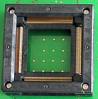 Module change: Turn the module lock knob until you hear a 'click' and the module unlocks. Remove the old module and insert the new module. Press gently until the module is flush with the surface, then turn the knob to lock the module. Inserting the device: Push the top of the ZIF socket downwards until the contacts open. If possible, use a vacuum pick tool for inserting the device into the socket. If not otherwise mentioned, Pin 1 is located at the front edge of the socket. Release the top of the socket. If you use the converter for devices with less pins, place the device towards the back edge of the socket (away from Pin 1). Programming the device: Before programming, visually check the device orientation and the connection of device and socket. Incorrect insertion or unconnected pins are normally detected by the programmer, but can lead to read errors or even damage the device. Do not directly touch the pins of the device or the socket. Removing the device: To take out the device, push the top of converter ZIF socket downwards until the contacts open, and use the pick tool for removing the device. | ![]() |